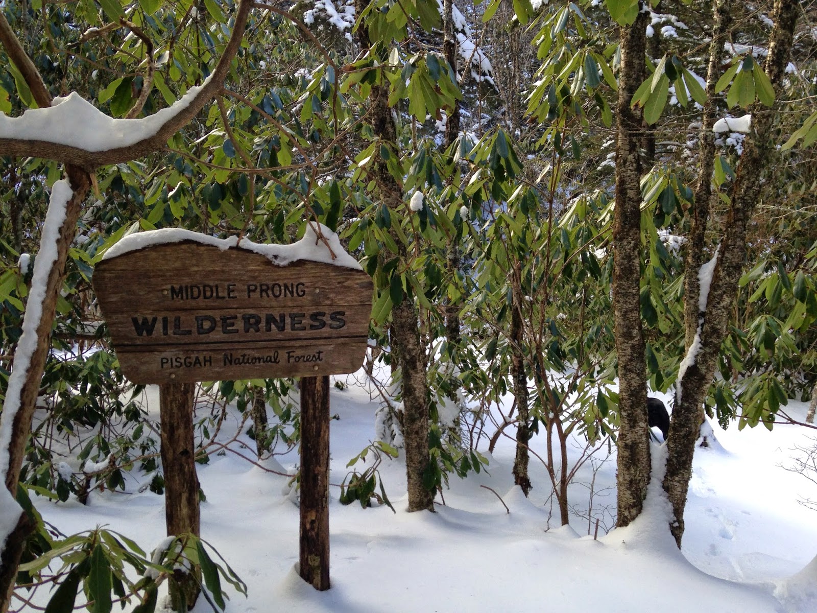 Once there we headed down the MST toward a bald I knew of a ways off. Middle Prong is fairly remote and it was no surprise that we were the first to venture down that section since the snows earlier in the week, Post holing through ten to twelve inches of snow is no easy thing to do. Mike P had not come equipped for this level of adventure but he followed along stoked to be outside. After what seemed like forever we made it the bald within five minutes of sunset. I don't know how that timing worked out... Just seemed like it was meant to be. We were rewarded for our efforts by one of the most beautiful sunsets I have ever been fortunate enough to see.... Words cant describe.